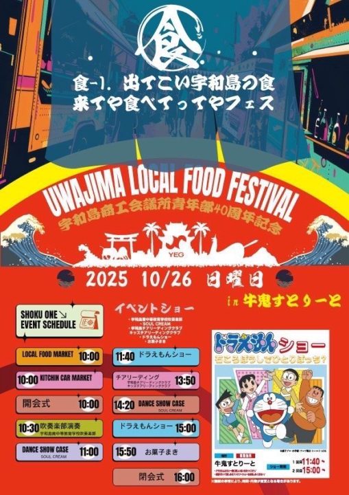10月26日 牛鬼ストリートをメイン会場として 食-1.出てこい宇和島の食来てや食べてってやフェス が開催されます。 主...