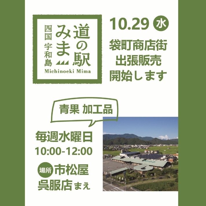 宇和島袋町商店街 市松屋呉服店まえで道の駅みまさんの出張販売がはじまります